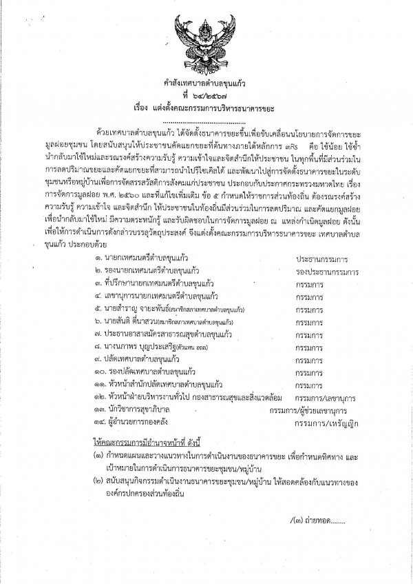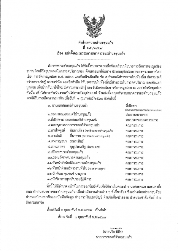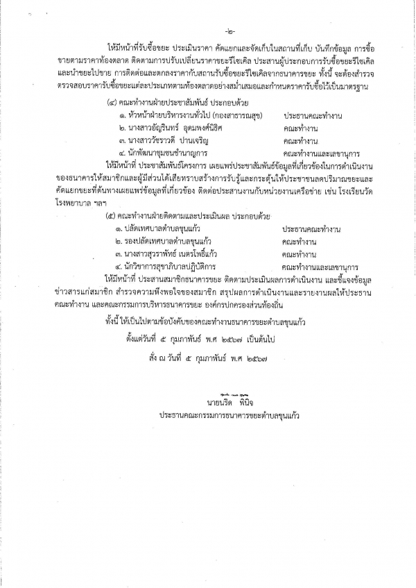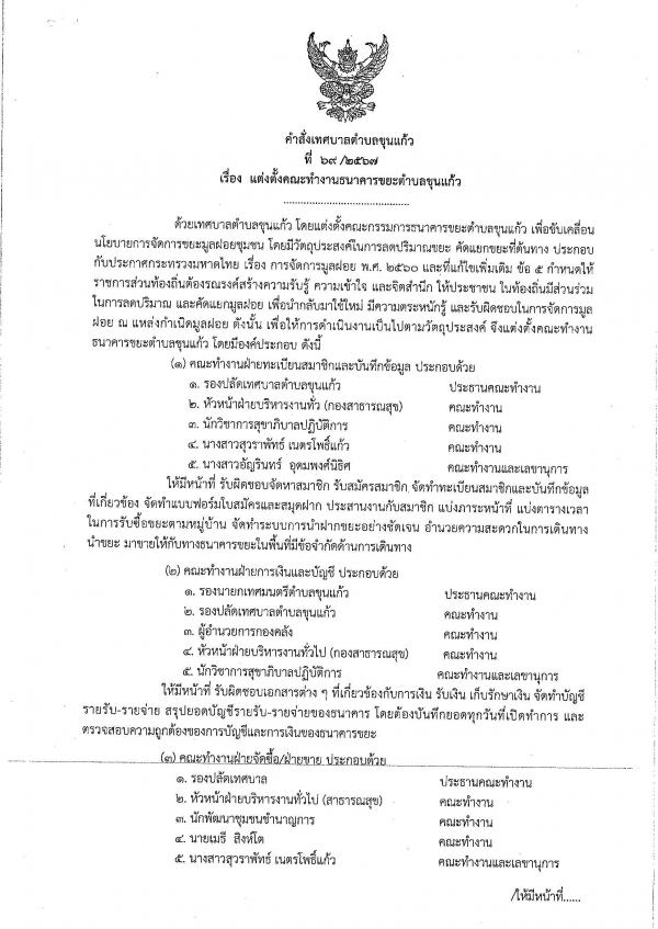 ประชาสัมพันธ์ คำสั่ง ระเบียบ เรื่องแต่งตั้งคณะกรรมการธนาคารขยะ