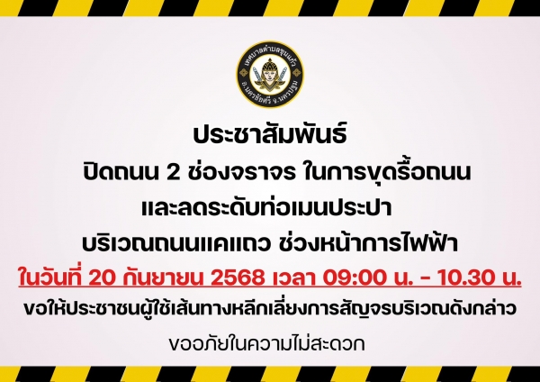 เนื่องด้วยเทศบาลตำบลขุนแก้ว มีความจำเป็นเร่งด่วนในการปรับปรุงซ่อมแซมถนนแคแถว ช่วงหน้าการไฟฟ้า เพื่อดำเนินการลดระดับท่อเมนประปา จึงมีความจำเป็นปิดถนน 2 ช่องจราจร ในการขุดหรือถนนและลดระดับท่อประปา