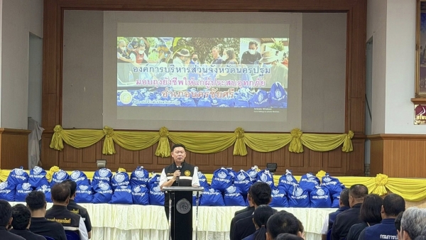 เข้ารับมอบถุงยังชีพที่ได้ประสานขอรับสนับสนุนจากองค์การบริหารส่วนจังหวัดนครปฐม