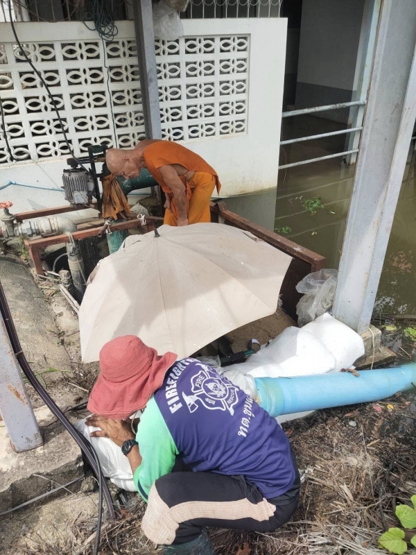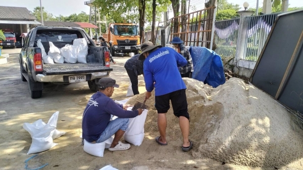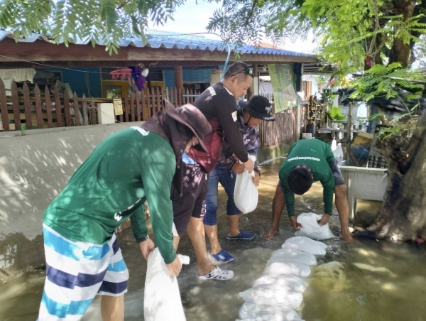 ลงพื้นที่ช่วยเหลือประชาชนที่ได้รับผลกระทบจากน้ำท่วม (กรอกทราย ป้องทราย ซ่อมแซมเครื่องสูบน้ำ เร่งระบายน้ำ)