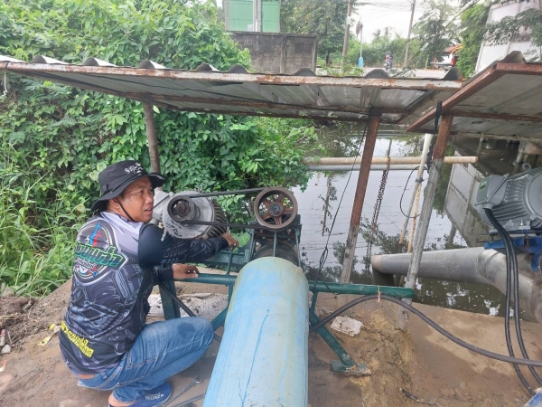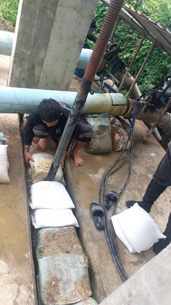 กรอกทรายเพื่ออุดทางน้ำซึมบริเวณซอยเทพประทานพร และแพศรีวิชัย